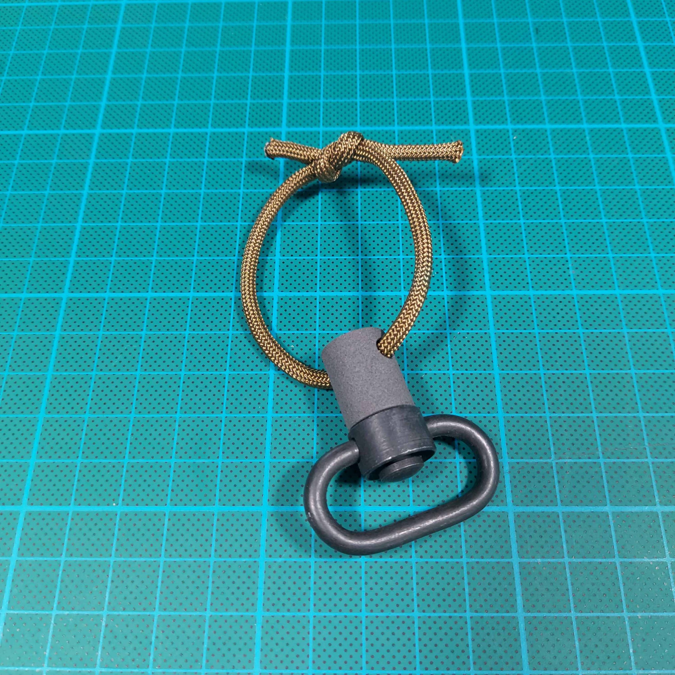 QD sling swivel rest is a counter part for QD sling swivels. You can tie the QD Rest counterpart, for example with a shoelace or paracord to your clothing or equipment. You can wear The One Sling weapon sling like a suspender with the QD Rest. You can then attach the weapon with QD cups to the sling fast. If you have a QD sling swivel on your Plate Carrier Sling, it is recommended to lock the sling with a QD Rest when you don´t use the sling. This way the sling doesn’t hang loose.